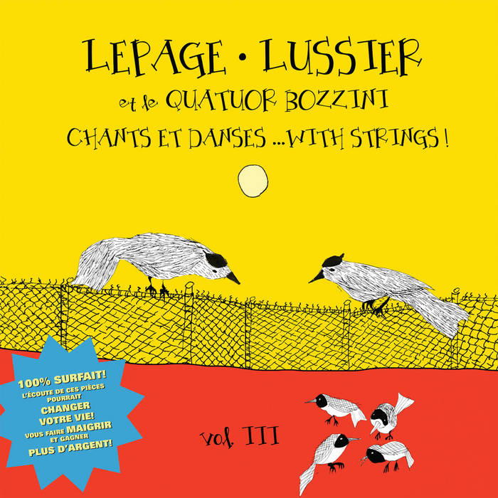 "Chants et danses... with Strings! (Vol. III) is a rather mind-blowing album by Robert Marcel Lepage, René Lussier, and the Bozzini Quartet. This album is a masterpiece of experimental music, joining together chamber music, noise music, and improvisation. The guitarist and clarinetist are joined here by an experimental and classical string quartet, which serves as support and filler more than anything else. Their role isn't prominent but certainly gives more body to the record. It's a really unique album I'd recommend to anyone!"-Dæv Tremblay in Can this even be called music?