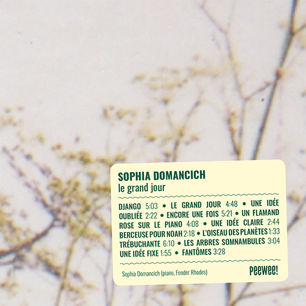 Quand on a, comme Sophia Domancich, brassé, enregistré et joué de multiples musiques – et des musiques multiples – en toutes conditions, allant du club aux grandes scènes de festivals internationaux, du duo au grand ensemble, vient le moment où la musique que l’on joue est tout simplement… celle que l’on DOIT jouer. Le grand jour, troisième album solo de Sophia Domancich, en est le témoignage.