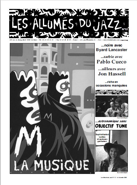 16-17-18-19 Le Cours du Temps Les occasions manquées avec Jean Morières, Didier Petit, Jean-Jacques Birgé, Roger Turner, Pascal Contet, Philippe Deschepper, François Cotinaud, Pascale Labbé, Carlos Zingaro, Veryan Weston, Doug Hammond, Fred van Hove, Guy Le Querrec, Adam Linz, Bernard Vitet, Robert Wyatt – Photographie de Guy le Querrec/Magnum Illustration par Cattaneo