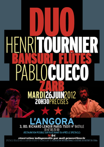 Duo Henri Tournier (bansuri, flûtes) Pablo Cueco !zarb) à L'ANGORA (Paris Bastille) Le mardi 26 juin !