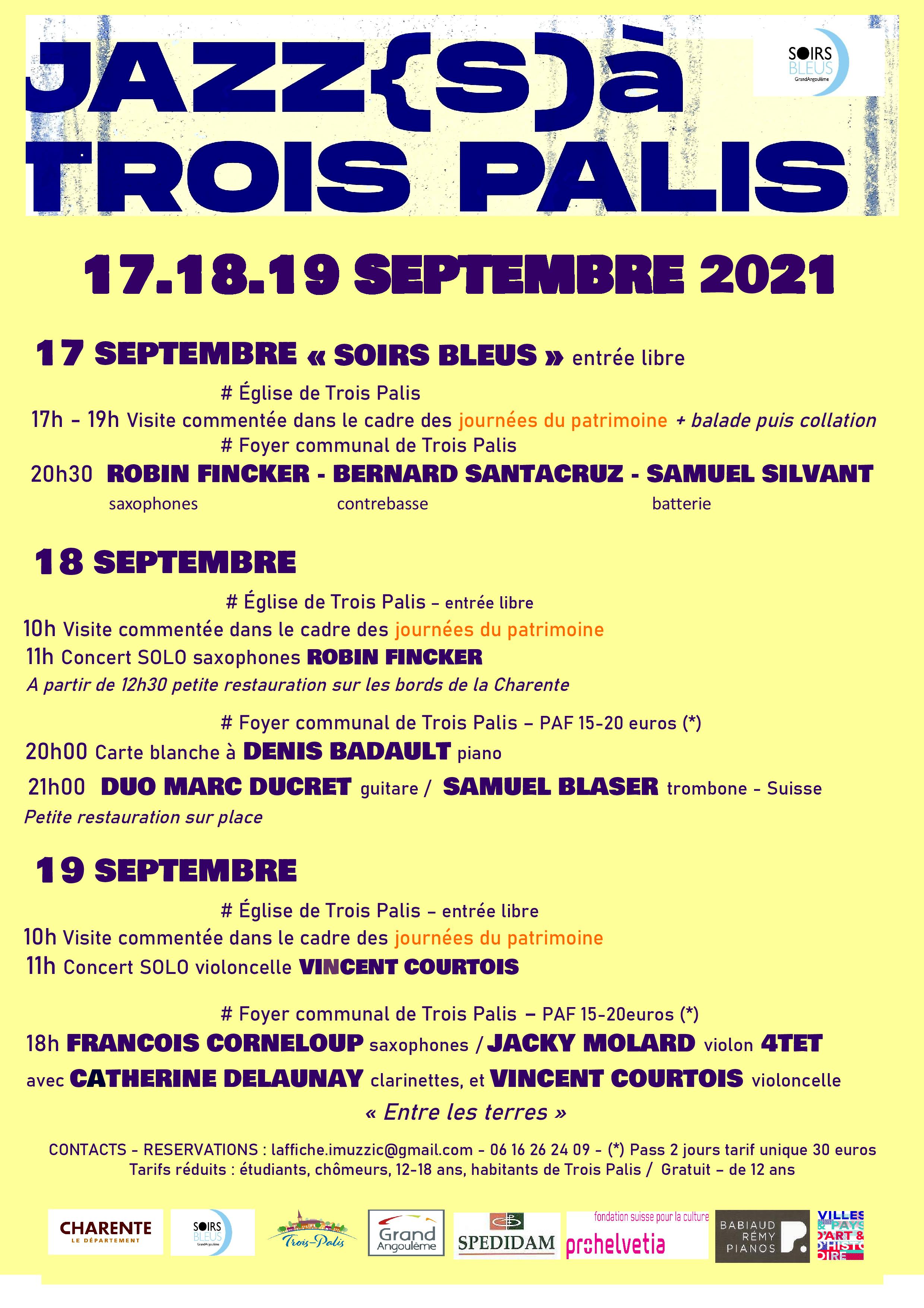 (*)"Soirs Bleus" est un événement co-organisé par GrandAngoulême, la Mairie de Trois Palis et Jazz(s) à Trois Palis