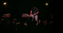 Arrivé tardivement sur le lieu du concert, aux Instants Chavirés, Jason Lescalleet règle calmement sa balance devant le public avec un tube de Justin Timberlake avant de se lancer dans une improvisation électronique débridée.