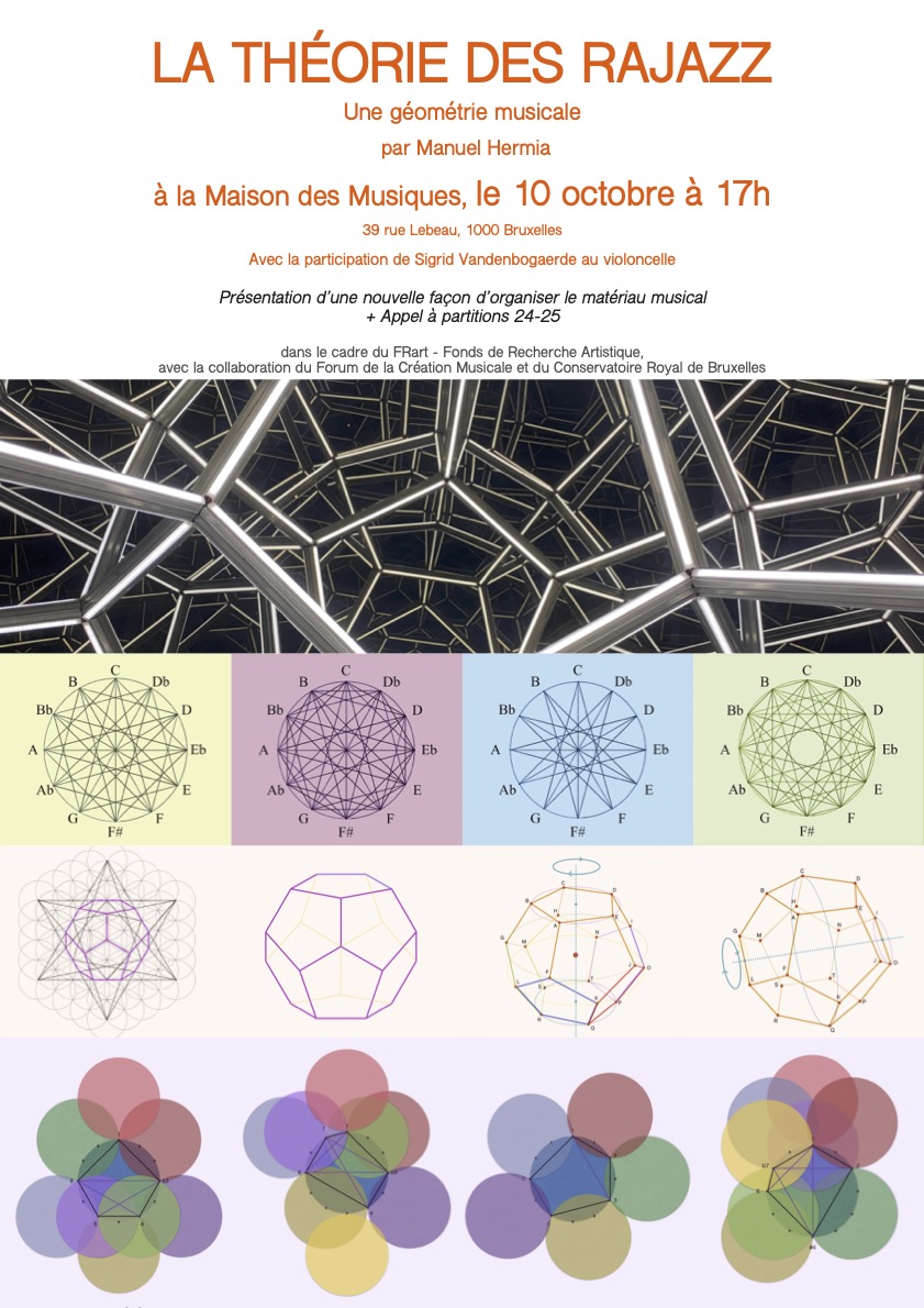 Dans sa première phase – année 1 - Manuel Hermia a approfondit sa théorie des rajazz via 3 outils mathématiques : la combinatoire, la géométrie et les graphes.
