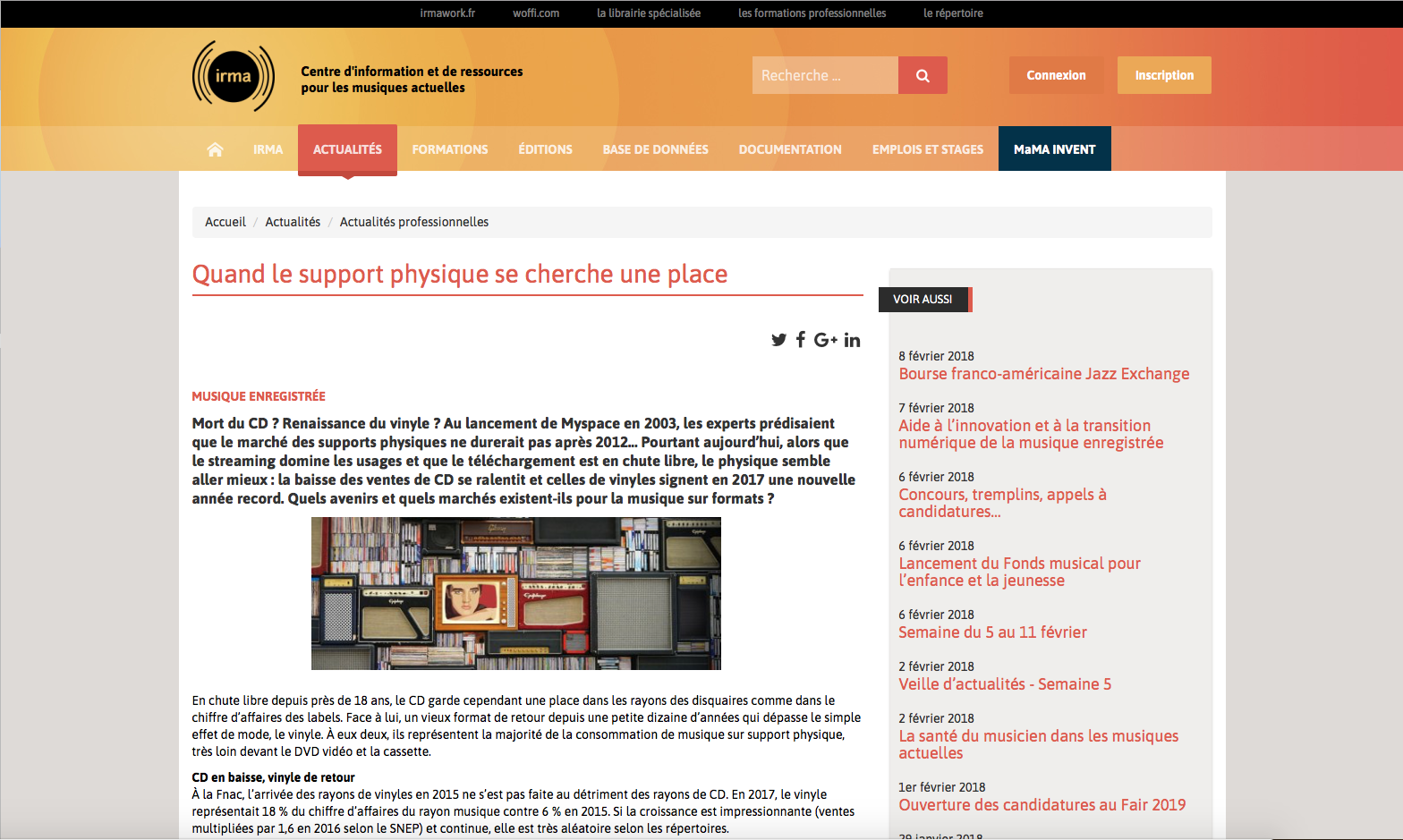 "Mort du CD ? Renaissance du vinyle ? Au lancement de Myspace en 2003, les experts prédisaient que le marché des supports physiques ne durerait pas après 2012… Pourtant aujourd’hui, alors que le streaming domine les usages et que le téléchargement est en chute libre, le physique semble aller mieux : la baisse des ventes de CD se ralentit et celles de vinyles signent en 2017 une nouvelle année record. Quels avenirs et quels marchés existent-ils pour la musique sur formats ?"