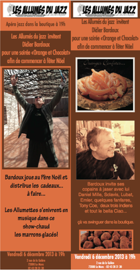 Juste avant les fêtes de Noêl, Didier Bardoux comédien bien connu de notre région viendra animer une soirée Orange et Chocolat et fera découvrir les pépites musicales des Allumés du Jazz