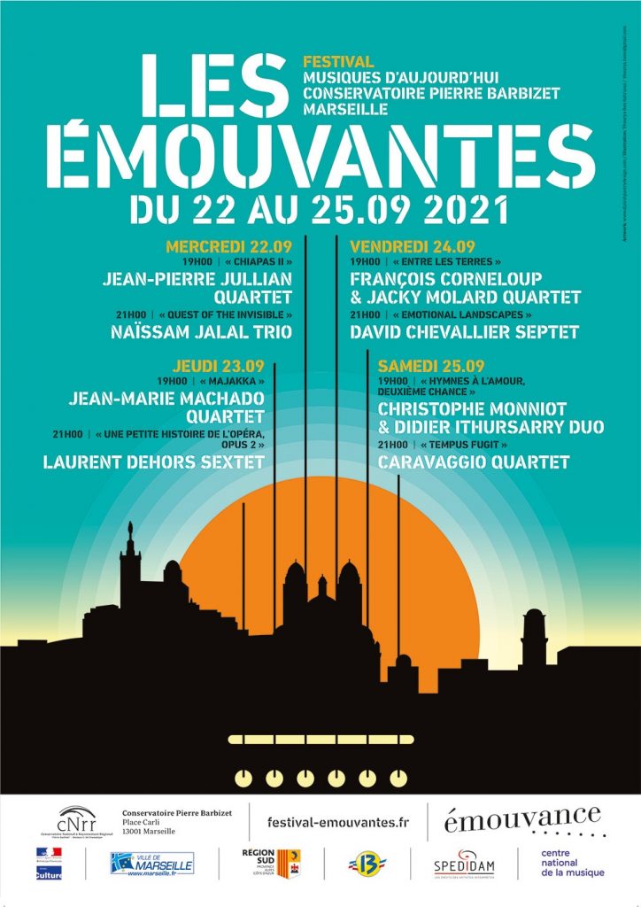 Plus que jamais, le monde de la Culture est malmené, et les émouvantes en ont été bien évidemment impactées. Comme un navire en pleine tempête, il nous a fallu adapter notre allure, voire même réduire notre voilure (comme l’année passée) mais in fine nous sommes toujours à flots, avec, qui plus est, un nouveau port d’’attache. En effet cette année 2021 verra le Festival les émouvantes s’installer au Conservatoire Pierre Barbizet de Marseille suite à la très dynamique invitation de son directeur Raphaël Imbert. Forts de ce nouvel ancrage, nous vous présenterons donc le deuxième volet de la programmation initiée en 2020, avec les ensembles au complet. Intimes ou en grande formation, acoustiques ou amplifiées, toutes les musiques, du festival 2021 sont bien l’expression d’un imaginaire dont l’exigence et l’excellence nous sont désormais vitales.